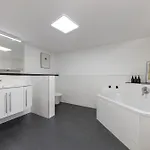 2-pokojowy Zentrale Design Wohnung In Ufernahe - 105 Qm - Parkplatz - Kuche - Netflix wyposażony jest w sofę i biurko do pracy z nowoczesnymi udogodnieniami, takimi jak TV i telewizja satelitarna. W pokojach zapewniono czujnik dymu. Obiekt noclegowy oferuje 2 sypialnie. Obiekt oferuje 2 łazienki z kabiną prysznicową walk-in, oddzielną toaletą i wanną, a także udogodnienia takie jak suszarka do włosów i ręczniki.